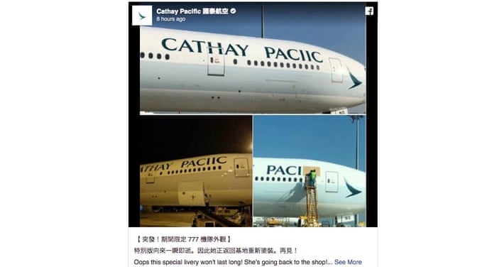 Cathay Pacific Spells Its Name Wrong On Side Of Plane Air Transport The Guardian